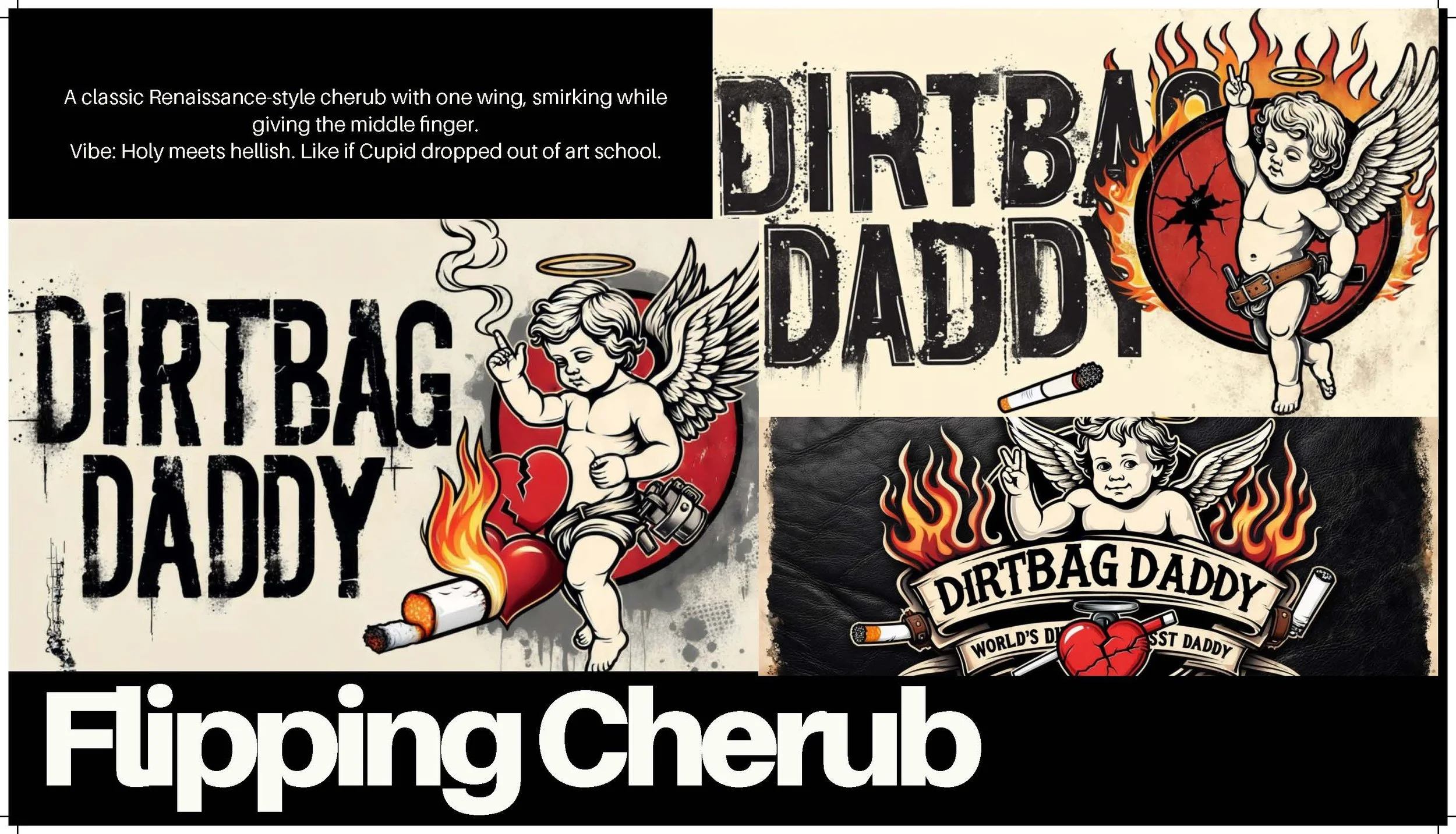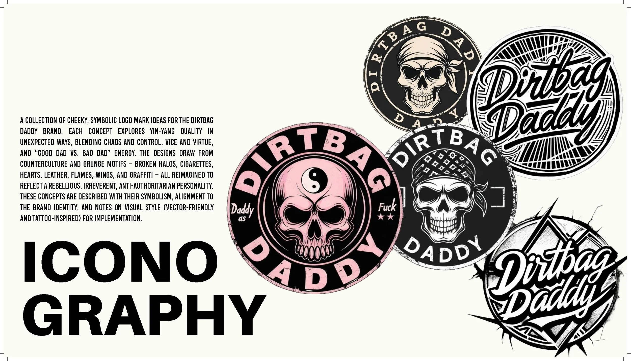 Brand identity + alt logo marks (cherub, skull, halo, pirate flag, smoke motifs)